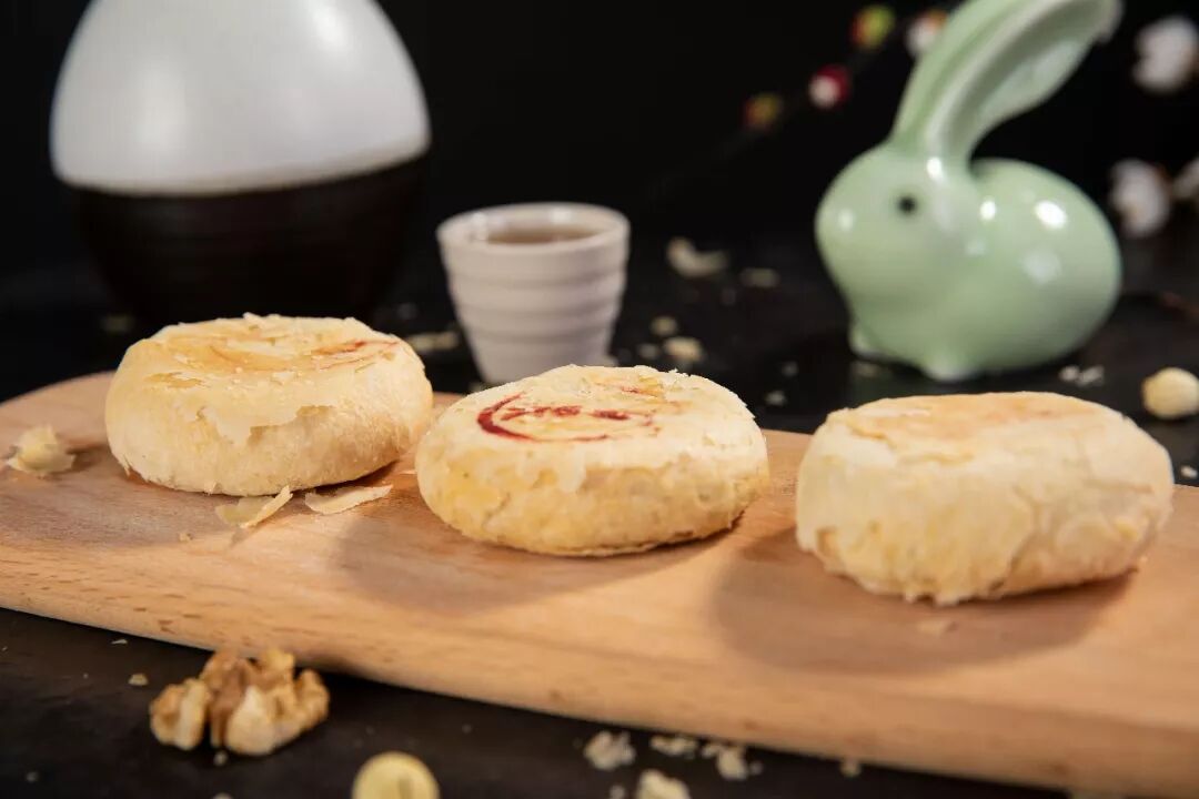 本味月饼最大的特点就在于“酥”,而这种特殊的口感来源于特殊的酥皮。酥皮工序全靠手工制作,师傅们将搓好的面团包住酥,一层一层的卷压。